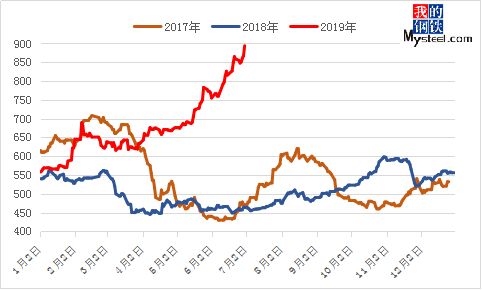 所以從主要價(jià)格因素的變化也能看出來它在逐漸的轉(zhuǎn)變,從供應(yīng)主導(dǎo)開始向需求主導(dǎo)轉(zhuǎn)移,對(duì)于目前和2019年下半年的市場(chǎng)價(jià)格,也需要去尋覓供需關(guān)系的“軌道”如何鋪墊,不妨從原材料的供需開始,再看鋼材的消費(fèi)力度,從而推到出未來供需走勢(shì)。